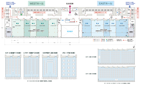 | 業務棟4階に様々な用途にご活用頂けるコンベンションホールを備え、会場設営からケータリングサービスまでトータルでサポートいたします。最大で約1,600平方メートル(約510坪)の無柱空間と最新設備が、あらゆる用途に対応いたします。